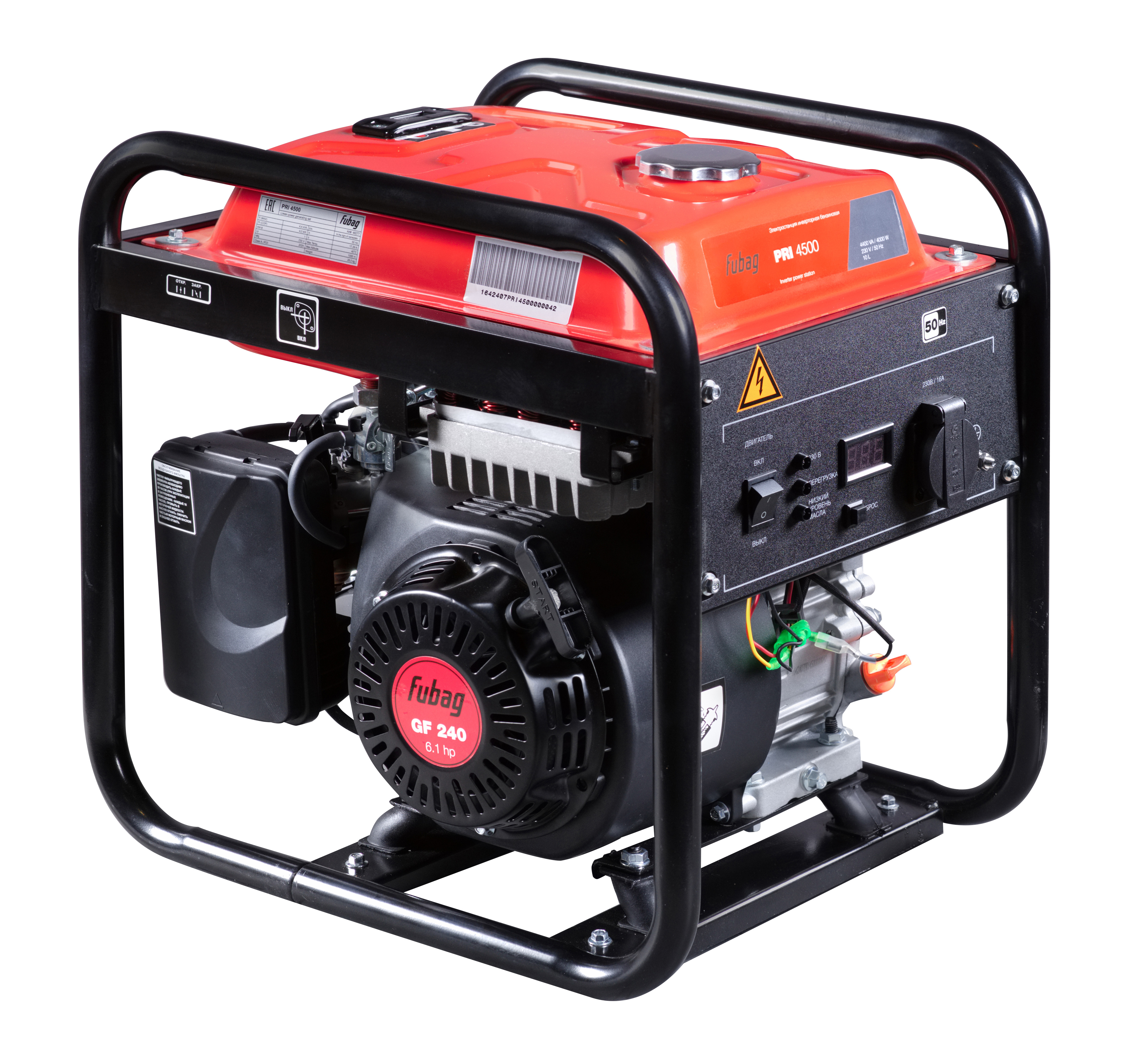 Панель управления генератора PRI 4500 оснащена розеткой на 230В/16А. Прочный металлический корпус надежно защищает рабочие узлы станции. Небольшой вес станции позволяет легко и просто транспортировать электростанцию.